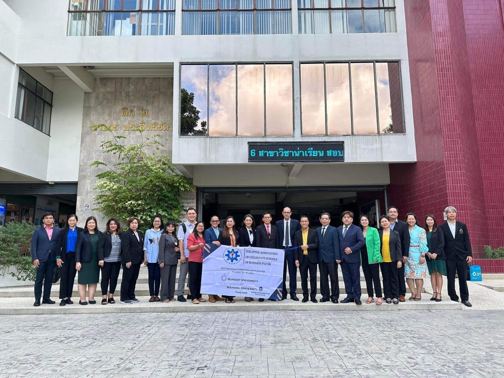 Bangkok, Thailand – The Philippine Association of Collegiate Schools of Business (PACSB) was fortunate enough for having a very successful and productive Educational Mission and Benchmarking Activities in two prestigious Universities in Bangkok Thailand on November 24-27, 2022. The participating PACSB members and other representatives from academic institutions were warmly welcomed by Rangsit and Mahidol Universities, respectively. A collaboration with these universities was evidenced through a formal signing of the Letter of Intent in preparation for a Memorandum of Understanding.